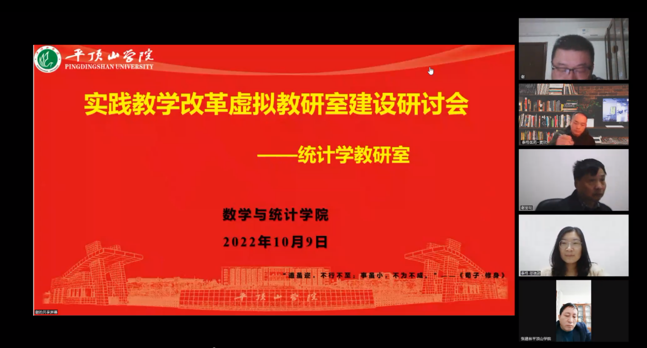 10月9日晚,yl23411永利集团官网登录通过腾讯会议网络平台召开了统计学实践教学改革虚拟教研室建设研讨及核心课程介绍会。yl23411永利集团官网登录院长李建民、书记张建林、副院长王俊俊、副书记孙亚南,泰格医药集团统计部高级总监夏欣出席,泰格医药集团人力资源管理部陈小玲副总监、沈燕,邵瑞颍、吴佳寅以及虚拟教研室全体成员和部分学生代表参加,会议由统计学教研室主任谢强主持。