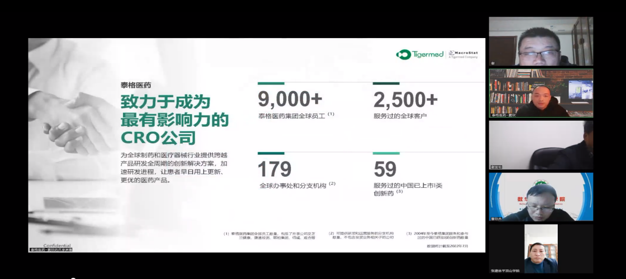 在核心课程介绍环节,张水利、王晗笑,马富强、王安、范国锋五位老师分别介绍了《概率论与数理统计》《应用随机过程》《建模实训》《统计预测与决策》《试验设计》《统计软件及应用》和《大数据技术应用》七门课程的教学内容设计以及具体建设情况,并结合实习实训内容,提出与泰格制药共同进行实践教学内容改革、毕业论文设计等活动,并进一步提出泰格医药统计部行业教师进入课堂,加强课程教学内容的交叉融合等多条建议。