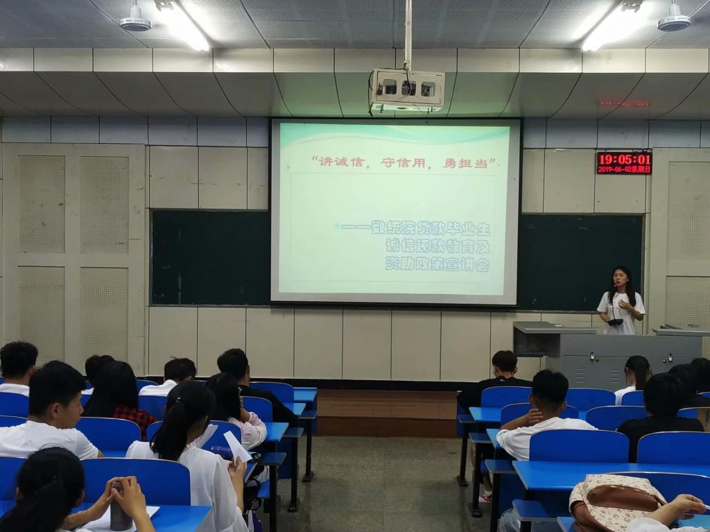 为了让同学们深入了解资助政策,教育毕业生诚信还款,6月2日晚上,yl23411永利集团官网登录在2206教室围绕“讲诚信,守信用”这一主题开展资助政策宣讲会,本次宣讲会由yl23411永利集团官网登录王新蕊老师担任主讲人,yl23411永利集团官网登录高校贷款毕业生,18级全体学生以及17级、16级生源地贷款学生、高校贷款学生参加。