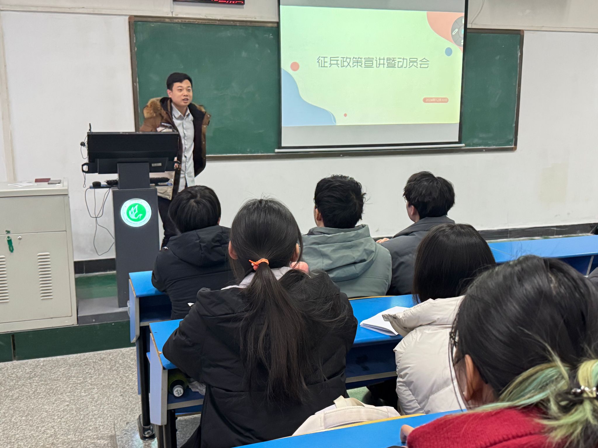 动员会上,崔老师从应征入伍的基本条件、优惠政策、报名流程及时间、应征地点等方面详细讲解了征兵政策,并强调到青年大学生参军入伍不仅是对个人意志品质的锤炼,更是为国防事业贡献青春力量的重要方式。同时,他鼓励同学们积极响应国家号召,投身军营,在保家卫国的同时实现自身价值。