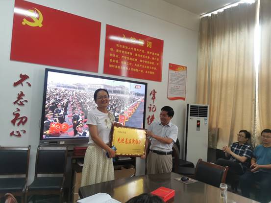 为获得优秀基层党组织的第三党支部颁发奖牌