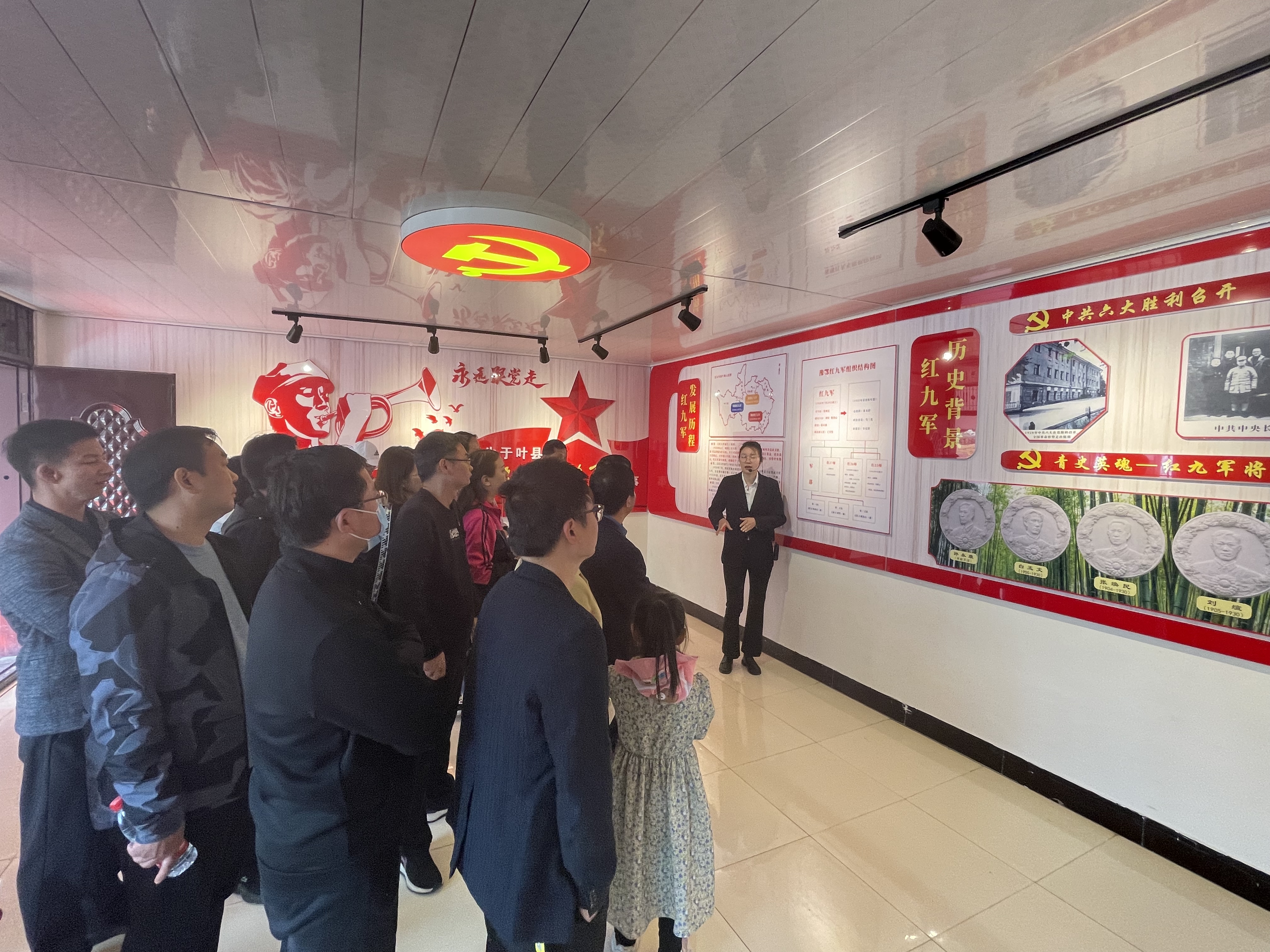 在中国工农红军第九军纪念碑前,全体教师党员佩戴党徽,面对党旗,举起右手,紧握拳头,重温了入党誓词,再次宣誓了入党时对党许下的庄严承诺。宣誓结束后,大家向“红九军”烈士纪念碑三鞠躬,表达对先烈们的崇高敬意和深切哀悼。随后,在烈士纪念馆内通过参观历史图片资料,了解红九军的历史背景和发展历程,聆听英雄们英勇奋战的故事,回顾在中国共产党领导下进行的波澜壮阔伟大斗争,激励着同志们时刻都要做到不忘初心、接续奋斗。