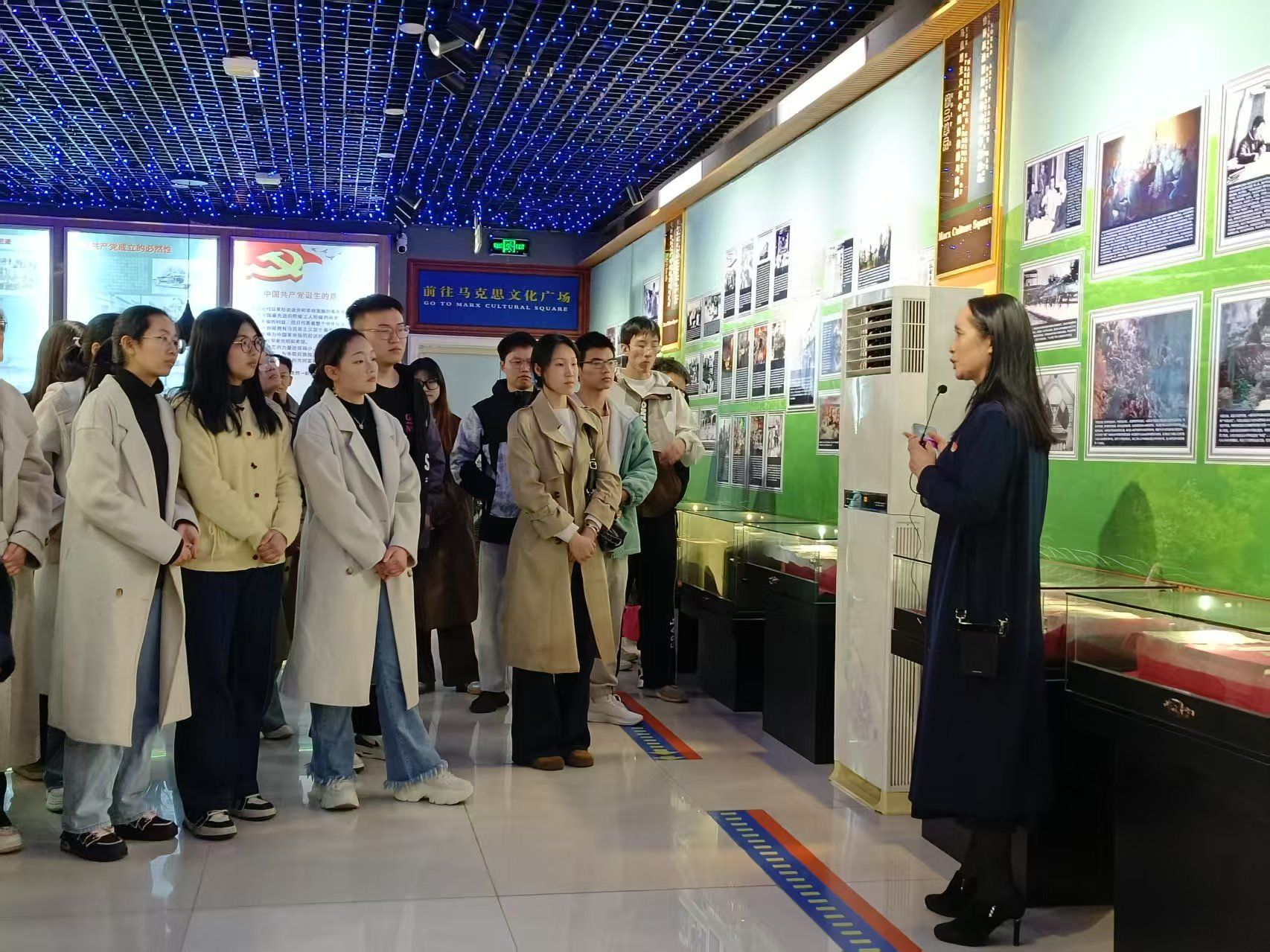 为深入学习贯彻党的二十大、二十届三中全会精神,引导学生坚定理想信念、激发青春活力,yl23411永利集团官网登录党委副书记孙亚南、辅导员耿梦媛带领新发展党员和马克思主义学习小组成员赴平顶山市马克思主义文化馆开展参观学习活动。