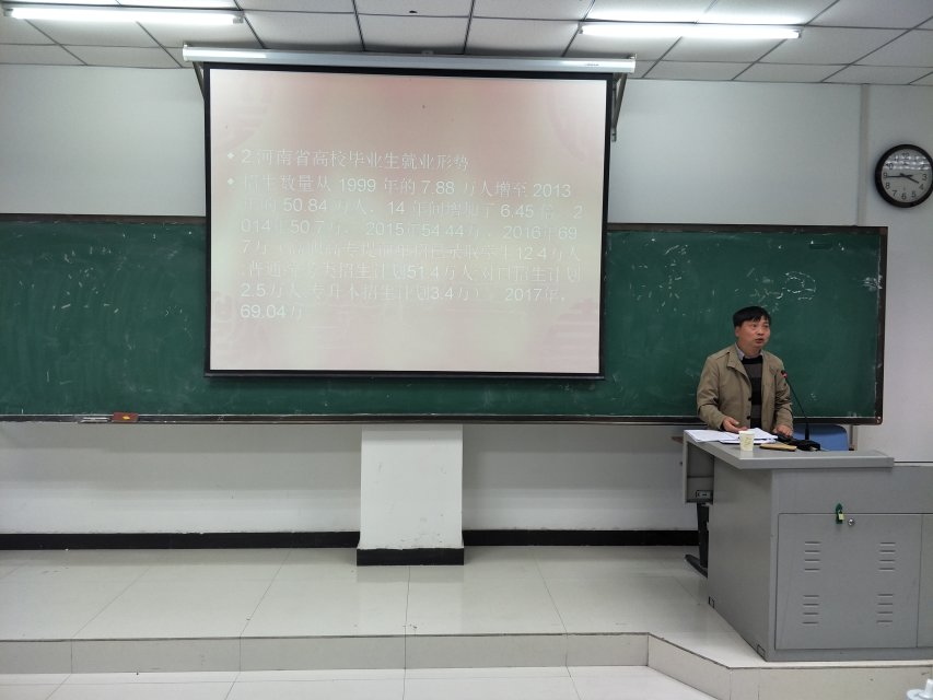 11月10日下午,yl23411永利集团官网登录在图书馆401教室开展了大学生就业指导讲座。此次讲座由yl23411永利集团官网登录书记李建民担任主讲,yl23411永利集团官网登录全体大四学生150余人都积极参加。本次讲座由辅导员王新蕊老师主持。