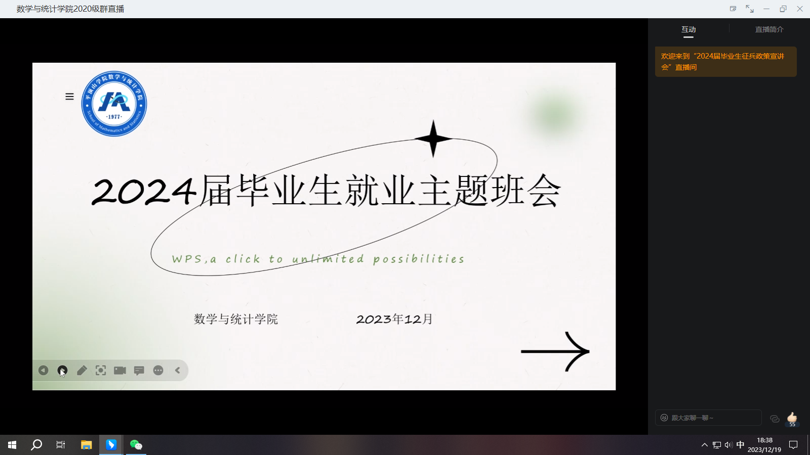 为加强2024届毕业生指导工作,引导毕业生树立正确的就业观和积极的求职心态,12月19日,yl23411永利集团官网登录于线上召开了就业主题班会,由辅导员詹美晨主讲,2024届全体毕业生参加。