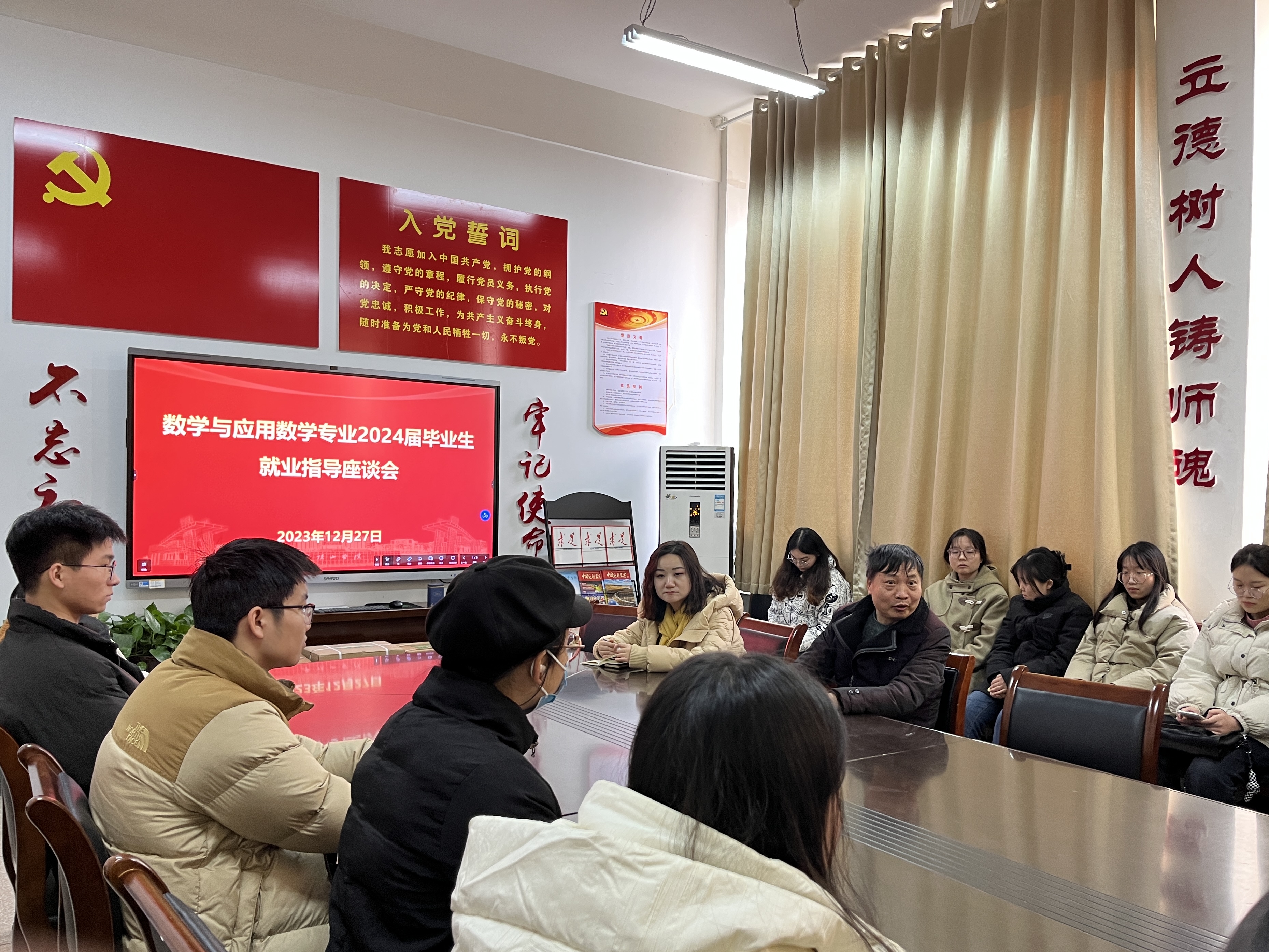 为进一步做好学生的就业工作,引导考研学生了解就业形势,抓住研究生考试后的就业关键期,12月27日下午,我院召开数学与应用数学专业就业指导座谈会,院长李建民、辅导员耿梦媛及毕业生代表参加了座谈会。