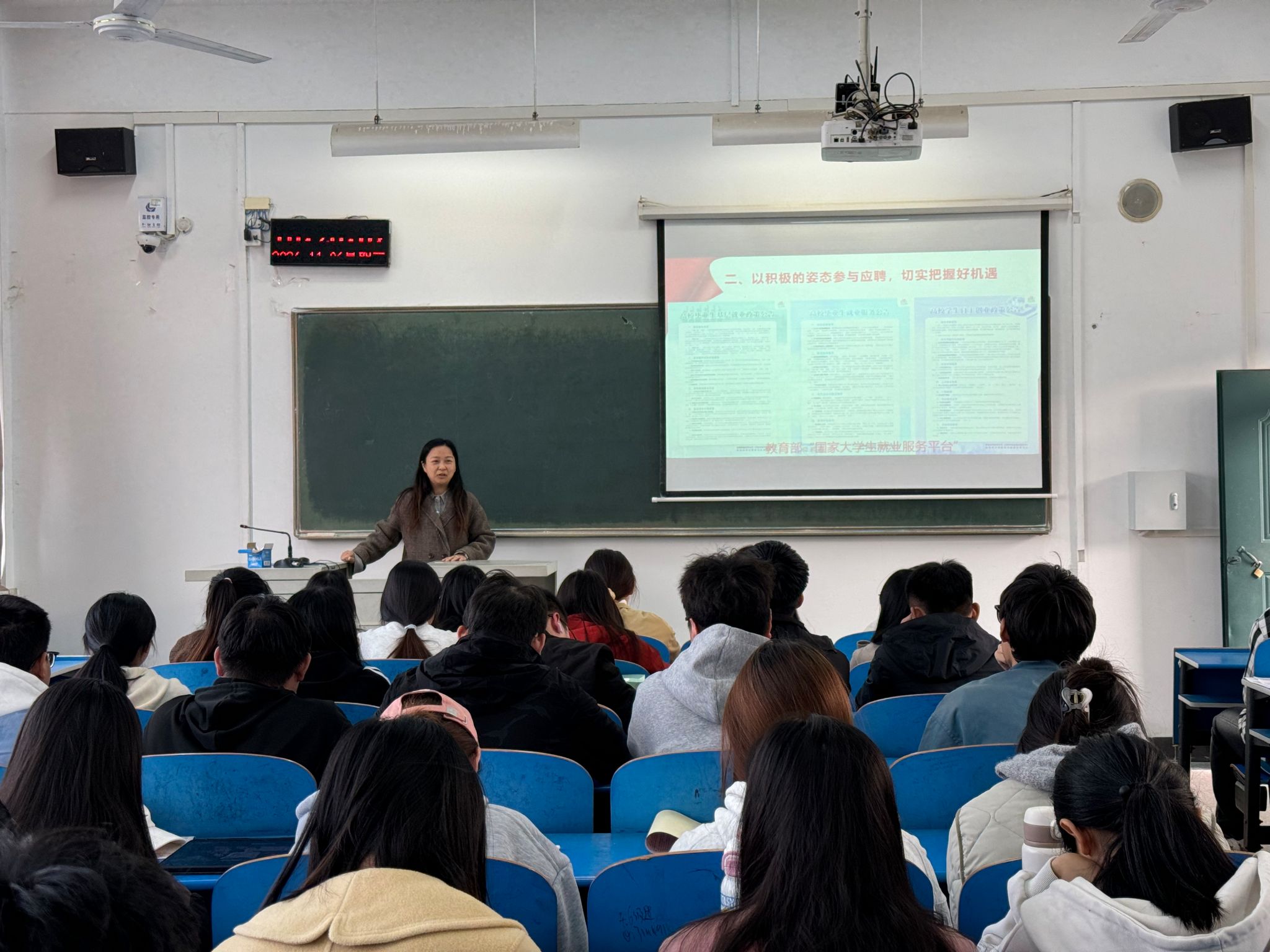 紧接着,王院长结合历届毕业生的就业情况,深入剖析了职业流向与趋势,希望同学们能够结合自己的专业特点,学会在求职过程中突出自己的优势,同时掌握有效的就业技巧,在学习中不断提升自己的能力和素质,努力提升自己的就业竞争力。