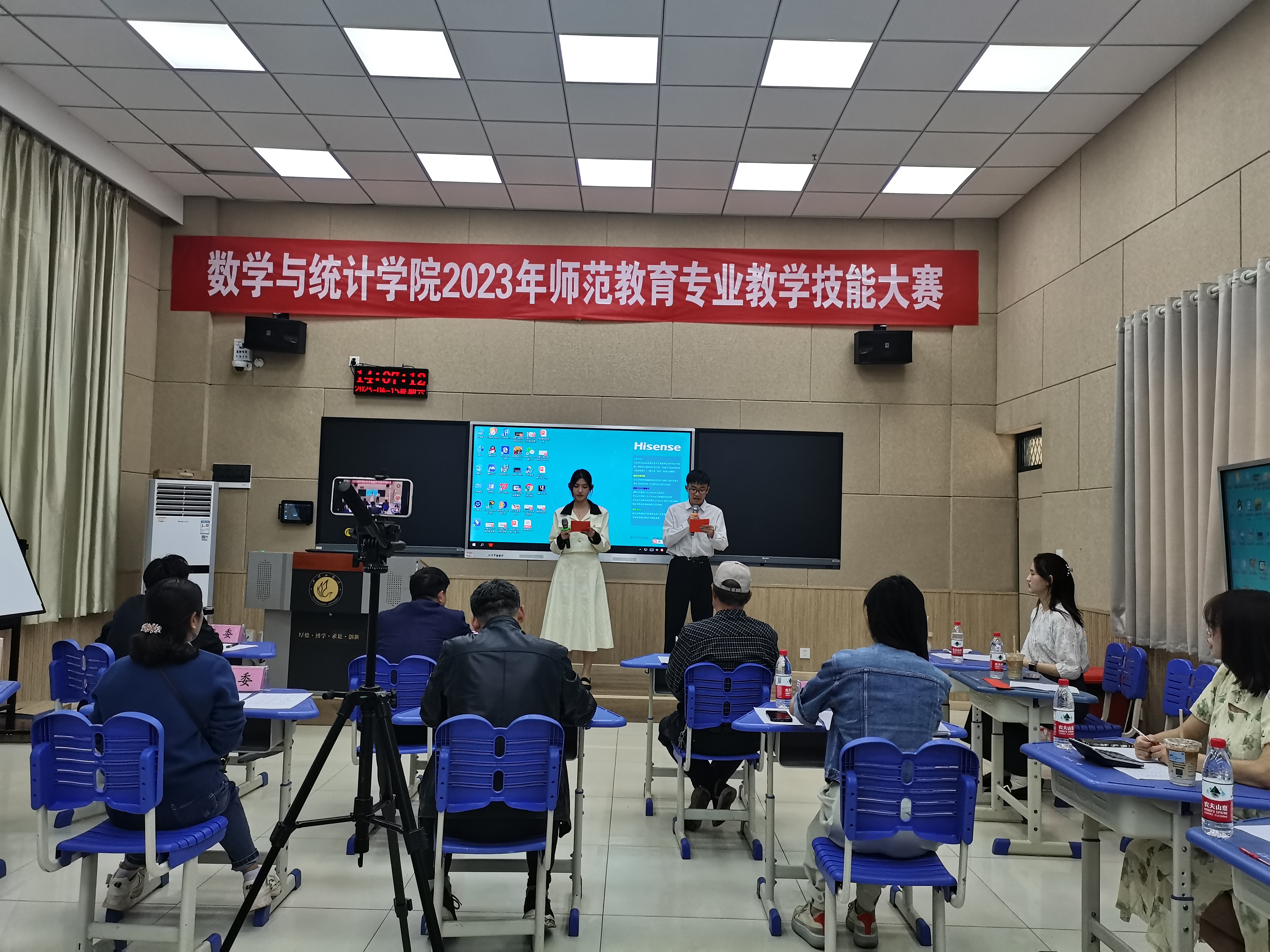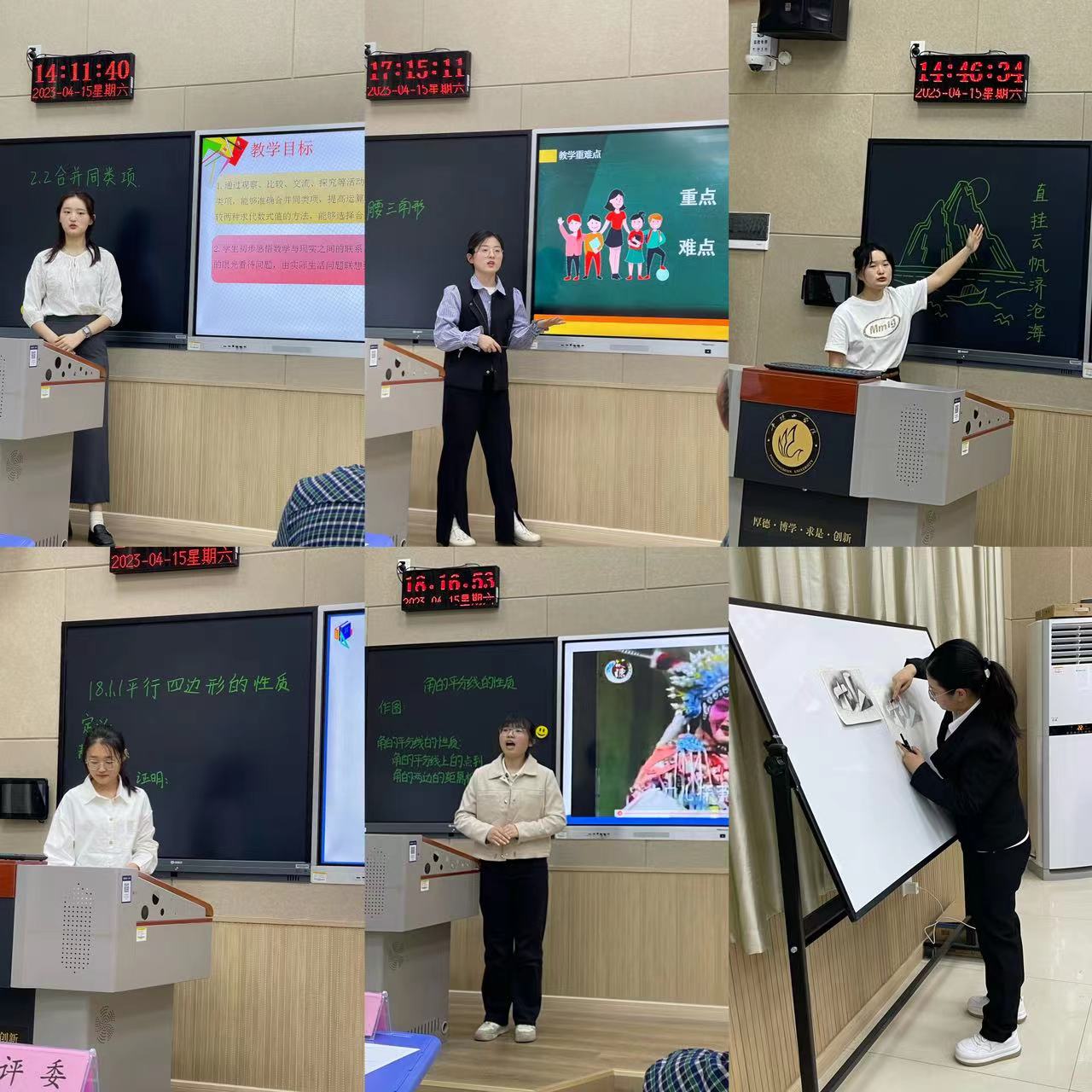 比赛以20级学生为主,经过初赛,有12名选手进入决赛。选手们从说课、答辩和特长展演等三个方面进行了精彩的展示,体现出扎实的专业知识和较强的教学技能。经过激烈角逐,2020级数学2班徐梓涵获得一等奖;2020级数学1班邢小宇、2020级数学2班王少丽获得二等奖;2020级数学1班武梦琳、2020级2班李瑞聪、程璐获得三等奖。