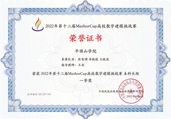 我校MathorCup高校数学建模挑战赛获奖名单 |