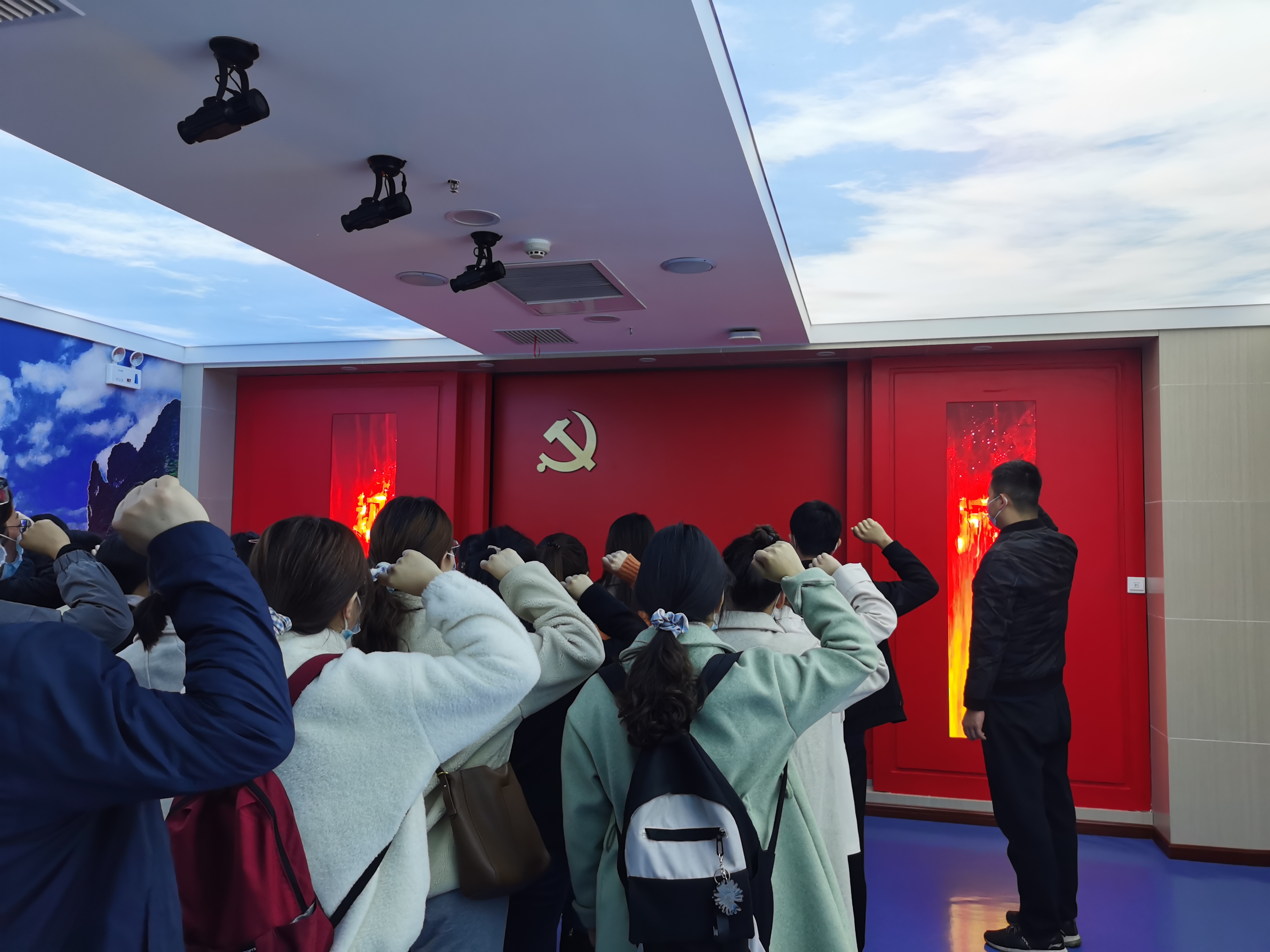 生动的警示教育版面,鲜活的案例人物,带给我们的是深思、是震撼、更是教育。当今世界正经历百年未有之大变局,我国正处于实现中华民族伟大复兴关键时期,我们党作为百年大党,要始终得到人民拥护和支持,书写中华民族千秋伟业,必须始终牢记初心和使命,坚决清除一切弱化党的先进性、损害党的纯洁性的因素,坚决割除一切滋生在党的肌体上的毒瘤,坚决防范一切违背初心和使命、动摇党的根基的危险。参观结束后,由团总支书记李睿智老师领誓,全体党员在党旗前庄严宣誓,重温入党誓词,用铮铮誓言彰显永恒初心,牢记党员宗旨,永葆党员本色。