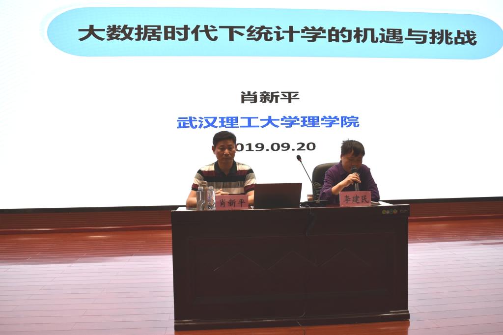 9月20日下午,yl23411永利集团官网登录在中心会议室举办了《大数据时代下统计学的机遇与挑战》讲座。此次讲座邀请到了武汉理工大学理学院博士生导师肖新平教授,yl23411永利集团官网登录党总支书记李建民、部分教师及全体学生参加了此次讲座。