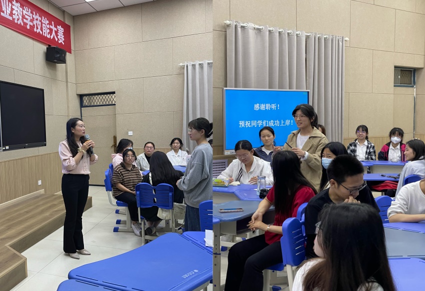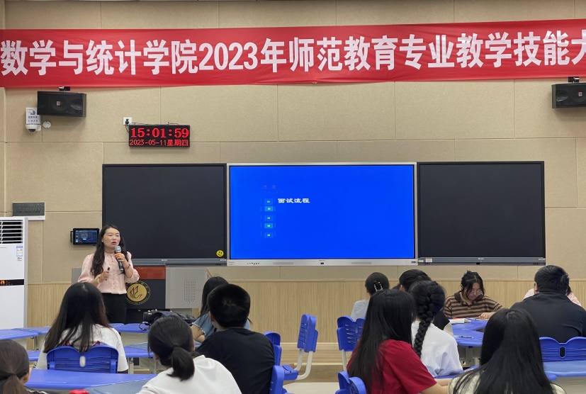 王艳艳老师是河南省骨干教师,平顶山市中小学一级教师、名师名班主任,市级骨干教师、教学能手,曾荣获全国说课标说教材大赛一等奖、省级一师一优课一等奖、省市级优质课一等奖,平顶山市教师基本功大赛一等奖等多项荣誉,多次担任教师资格证面试官、各地市招教面试官。王老师围绕面试流程、面试项目及内容、结构化面试内容解析和评判、试讲注意事项、答辩注意事项五个部分,结合自己长期从事教师资格证面试的经验,对中小学教师资格面试技巧进行了详细具体的剖析和讲解。讲座结束后,王艳艳老师与我院师范专业学生就面试中的相关问题进行了交流。