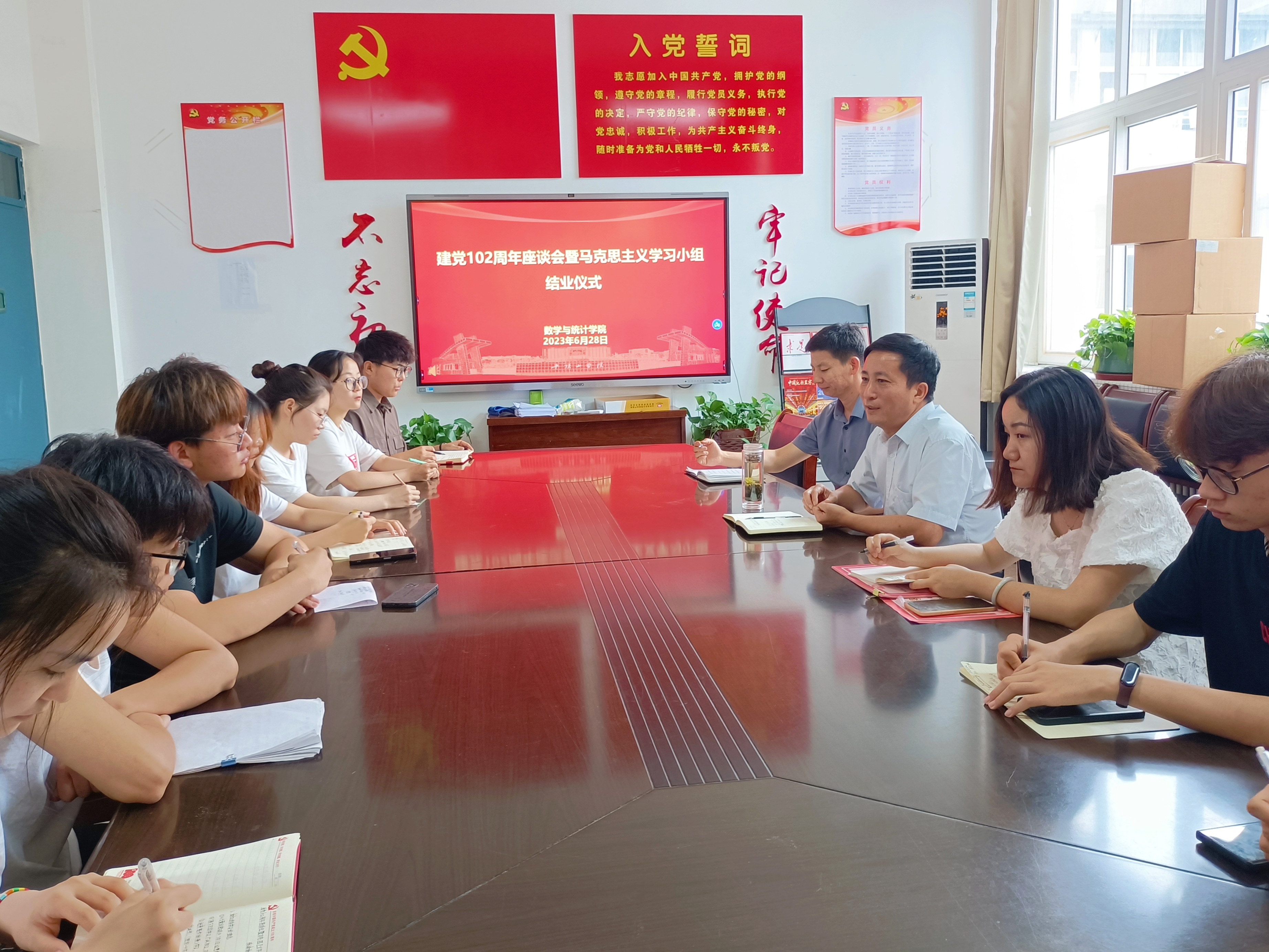 6月28日,yl23411永利集团官网登录在2317会议室举办建党102周年座谈会暨马克思主义学习小组结业仪式,yl23411永利集团官网登录党委书记张建林、副书记孙亚南、辅导员耿梦媛及全体学员参加此次活动。