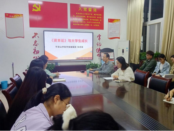 为进一步加强马克思主义理论的学习与研究,进一步夯实马克思主义学习小组成员的理论基础,10月31日晚,yl23411永利集团官网登录马克思主义学习小组举办了理论学习活动,yl23411永利集团学报编辑、马克思主义学院教师朱忠良作了题为“《资本论》与大学生成长”的专题讲座,小组全体成员参与讲座。