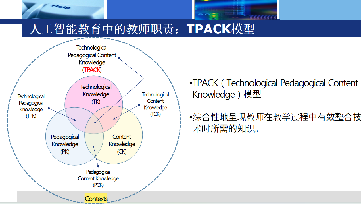 严教授首先回顾了人工智能的定义与发展历程,从最初的简单计算到如今的深度学习,人工智能技术的飞速发展不仅改变了我们的生活方式,更对教育领域产生了深远的影响。他强调,人工智能正逐渐渗透到教育的各个层面,从教学内容、教学方法到教育评估,都在经历着前所未有的变革。接着,严教授详细阐述了人工智能对教育的影响。他指出,人工智能技术的引入使得教育更加个性化、智能化,能够根据学生的学习情况和兴趣爱好提供定制化的学习资源和辅导。在谈到教育与技术的融合时,严教授特别提到了教师的角色与能力需求。他认为,在人工智能时代,教师不仅需要具备扎实的专业知识,更需要掌握技术与教学相结合的核心能力。他详细介绍了TPACK和AI PACK框架,强调这是未来教师必须掌握的重要技能,以便更好地将人工智能技术融入教学实践中。最后,严教授展望了未来教育的方向。他指出,随着人工智能技术的不断进步和应用,未来的教育将更加注重培养学生的创新思维和实践能力。同时,教育也将更加开放和包容,为不同背景、不同需求的学生提供更加多元化的学习路径和成长空间。
