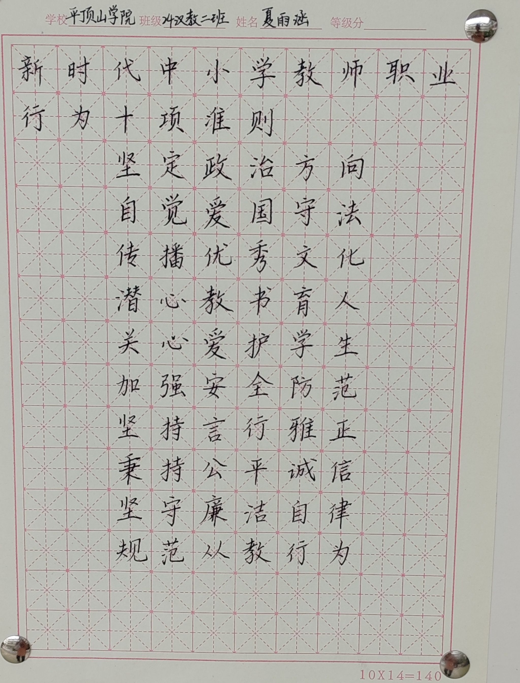 通过本次三笔字比赛活动,不仅激发了师范生对书法艺术的兴趣和热爱,培养其审美情趣和文化素养,为今后从事教育教学工作奠定坚实的基础;比赛也为我校不同院系的师范生提供学习交流机会,助力师范生提升实践创新能力,将理论知识与多元教育场景相结合,培养具有创新精神和实践能力的卓越师范生。