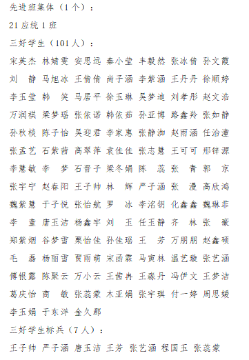 根据《关于开展 2022-2023学年先进班集体、三好学生、优秀学生干部评选工作的通知》,按照《yl23411永利集团先进班集体、 三好学生、优秀学生干部评选办法(试行)》,坚持公开、公平、公正、择优的原则,经学生本人提出书面申请,班级集体评议推荐,院评先评优工作评审领导小组集体讨论,并由党委会议研究,拟推荐以下班级、同学获得2022-2023学年先进班集体、三好学生、三好学生标兵、优秀学生干部。现公示如下: