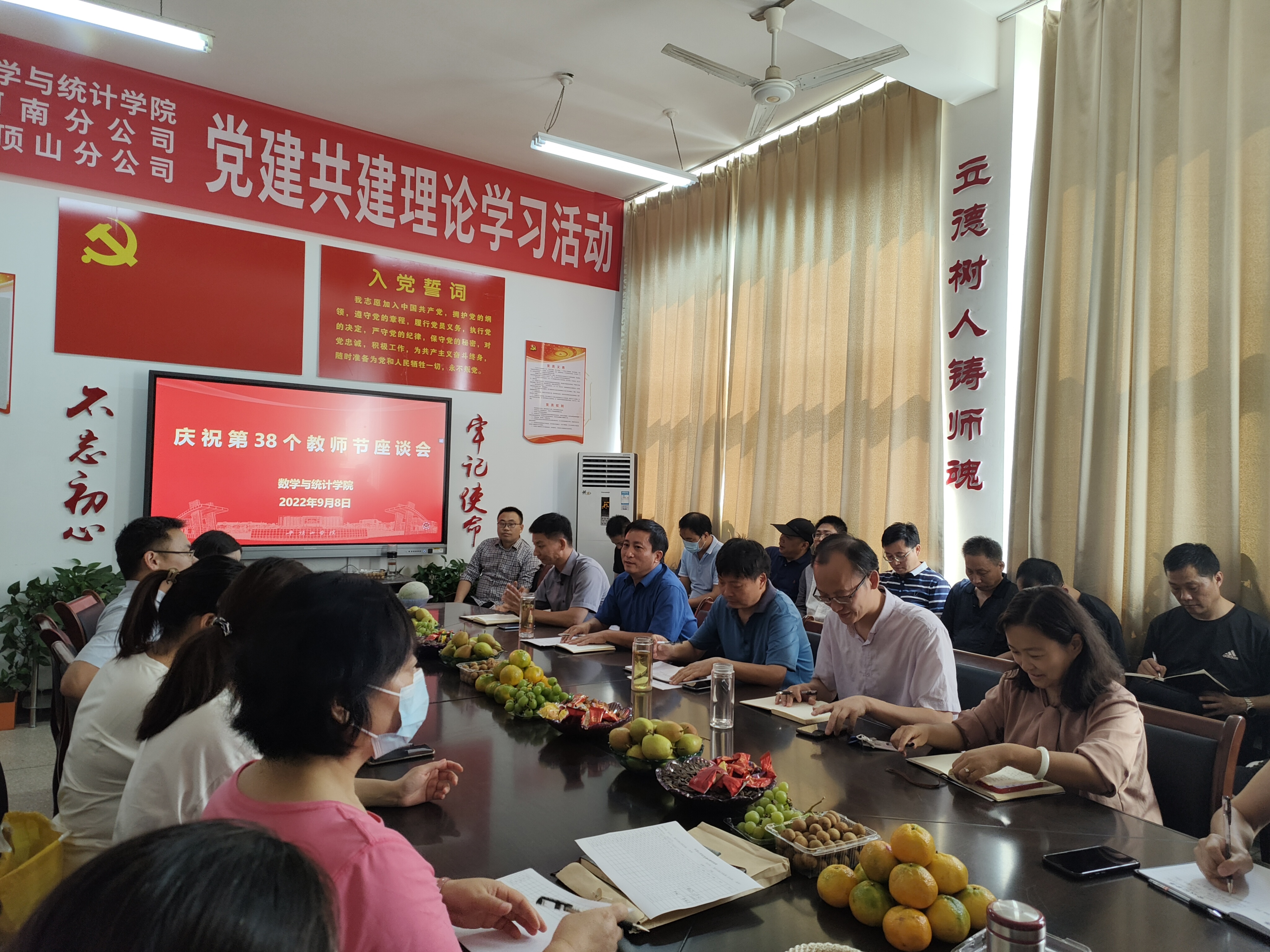 金秋硕果香,浓浓尊师情。在第38个教师节来临之际,yl23411永利集团官网登录分工会于9月8日下午召开教师节座谈会,交流从教心得,共话学院发展。会议由yl23411永利集团官网登录党委书记、分工会主席张建林主持,全体教师参加。